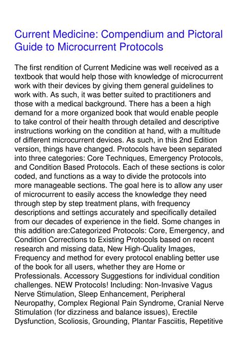 PDF Current Medicine: Compendium and Pictoral Guide to Microcurrent Protocols Free by ...